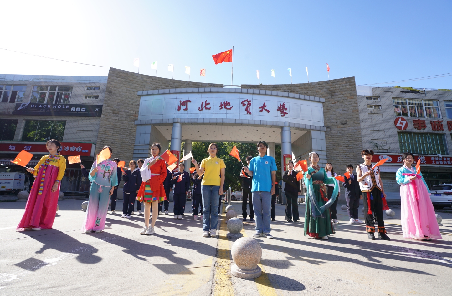 为庆祝中华人民共和国成立75周年,加强大学生爱国主义教育,10月1日,河北地质大学在主楼广场前举行庆祝中华人民共和国成立75周年“我和祖国共成长”主题活动,主题活动分为升旗仪式、签名活动和红歌传唱。