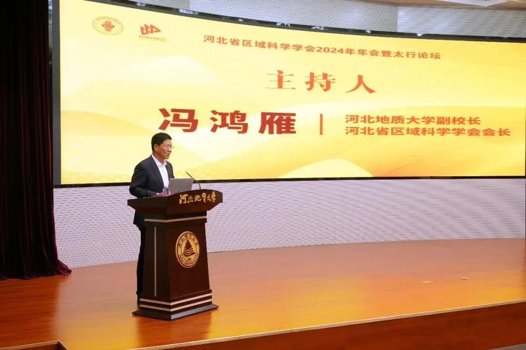 11月2日,河北省区域科学学会2024年年会暨太行论坛在河北地质大学举行,会议主题为“新质生产力与区域高质量发展”。河北地质大学党委书记和志强,河北省科学技术协会副主席华世勃,中国社会科学院农村发展研究所党委书记、中国社会科学院大学教授杜志雄,中国国土经济学会理事长、河北省区域科学学会名誉会长、国家发改委国土地区研究所原所长肖金成,河北经贸大学原副校长、京津冀协同发展河北省协同创新中心理事长武义青,南开大学教授、京津冀协同发展研究院秘书长张贵,河北省宏观经济研究院副书记、河北省社科联副主席高智,河北地质大学太行学社执行主任、河北省区域科学学会常务副会长、秘书长韩劲出席大会。河北地质大学副校长、河北省区域科学学会会长冯鸿雁主持论坛。