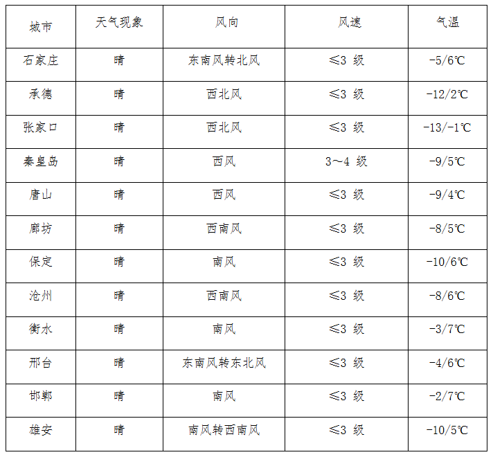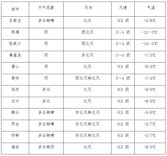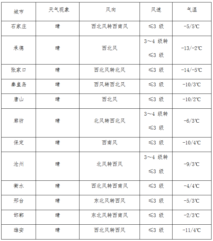 二、未来三天全省主要城市气象要素预报(河北省气象台)