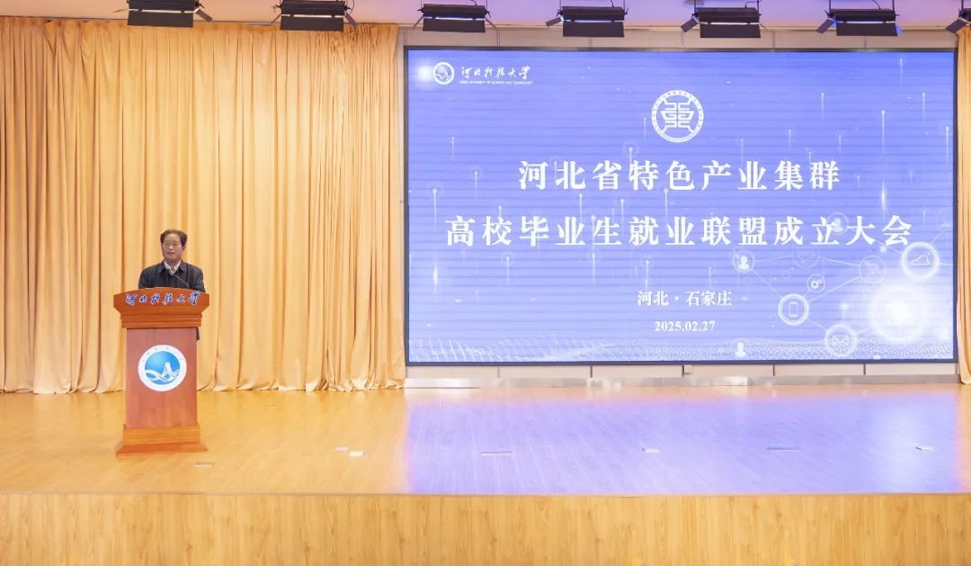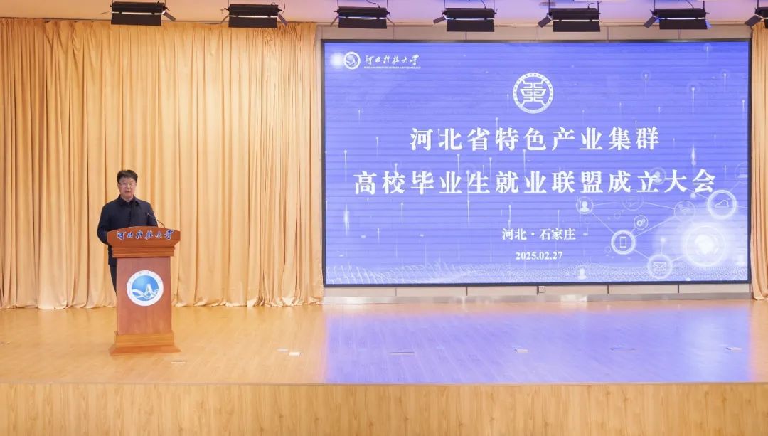2月27日上午,河北省特色产业集群高校毕业生就业联盟成立大会在我校举行。河北省教育厅、河北省人力资源和社会保障厅、河北省工业和信息化厅、河北省农业农村厅、河北省商务厅以及省内各高校、特色产业集群龙头企业、协会负责同志出席成立大会。校党委书记朱立光致辞,校党委副书记张文俐主持。