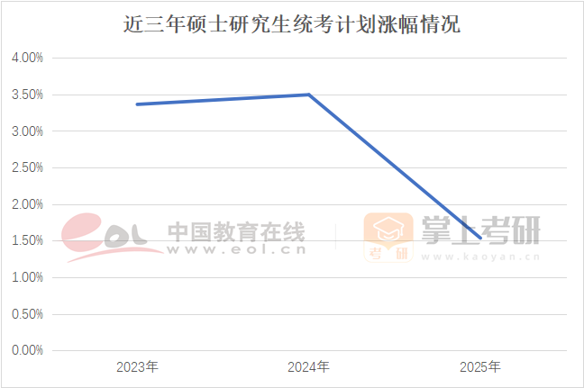近年来,我国研究生招生规模逐年扩大,根据统计,2025年全国高校(不含科研院所及党校)硕士研究生统考计划(不含推免及单独考试)招生总人数87.22万人,较上年增加1.3万人。虽然硕士研究生统考招生计划呈现逐年增加趋势,但是今年招生计划涨幅较往年有所下降。2025年硕士研究生统考计划增长率为1.5%,相较此前两年,增幅有所放缓。