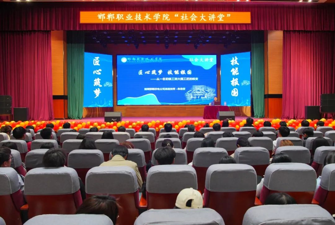为深入贯彻落实党的二十大精神,大力弘扬劳模精神、劳动精神、工匠精神,充分发挥大国工匠的示范引领作用,3月20日,邯郸职业技术学院特邀全国劳动模范、2024年 “大国工匠培育对象”、 国网邯郸供电公司安全总监朱劲雷在文化艺术中心举办了“社会大讲堂”专题讲座。讲座以“匠心筑梦 技能报国——从一名初级工到大国工匠的蜕变”为题,学院500余名师生参加,现场反响热烈。