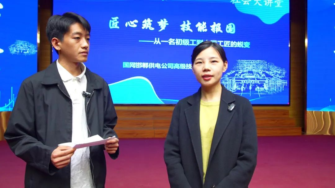 讲座在掌声中落幕,会后,邯郸职业技术学院融媒体中心对朱劲雷以及邯郸职业技术学院师生代表进行了采访。师生纷纷表示以朱劲雷为榜样,将以工匠精神为引领,在技能成才路上笃行不怠。