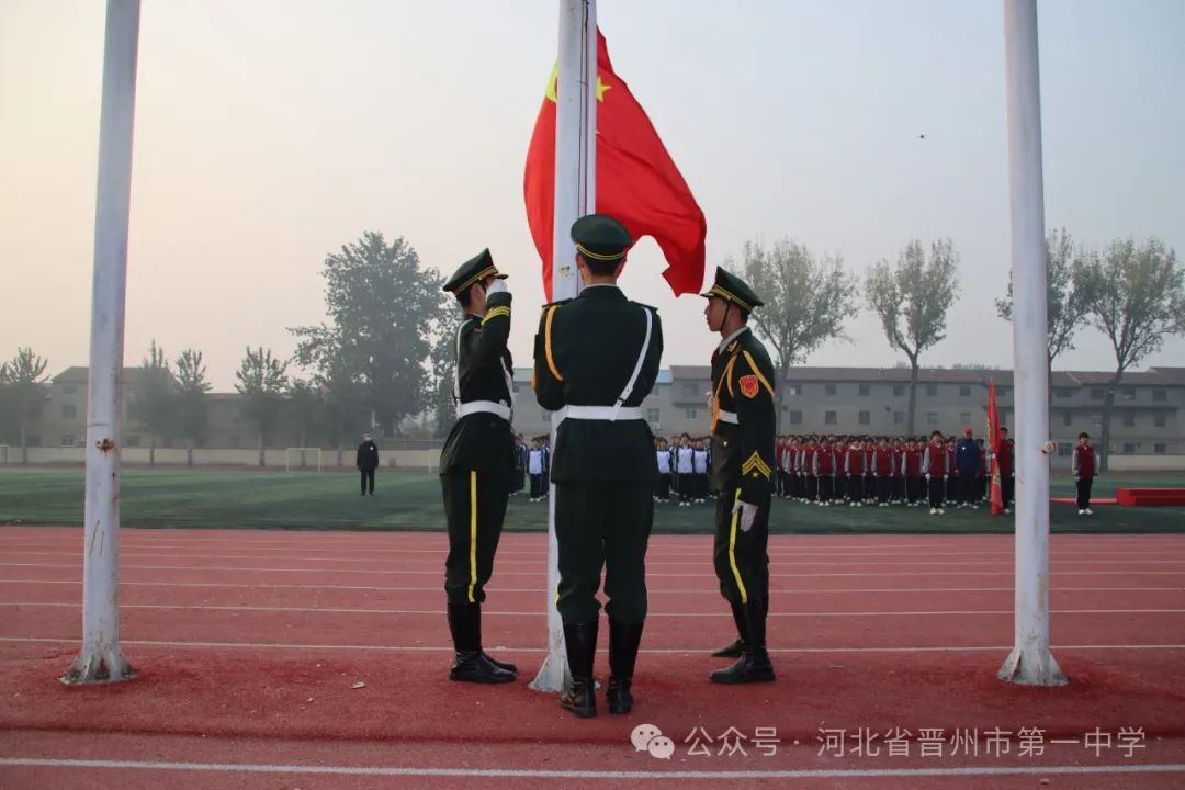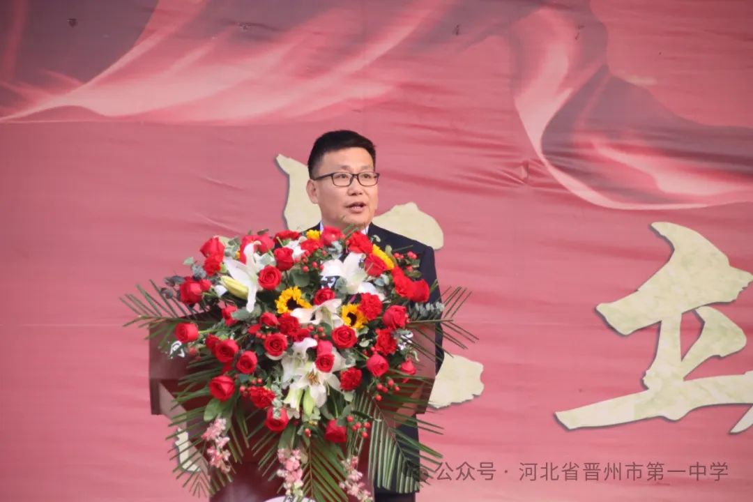曹志威书记宣布晋州市第一中学2024年秋冬季田径运动会开幕。