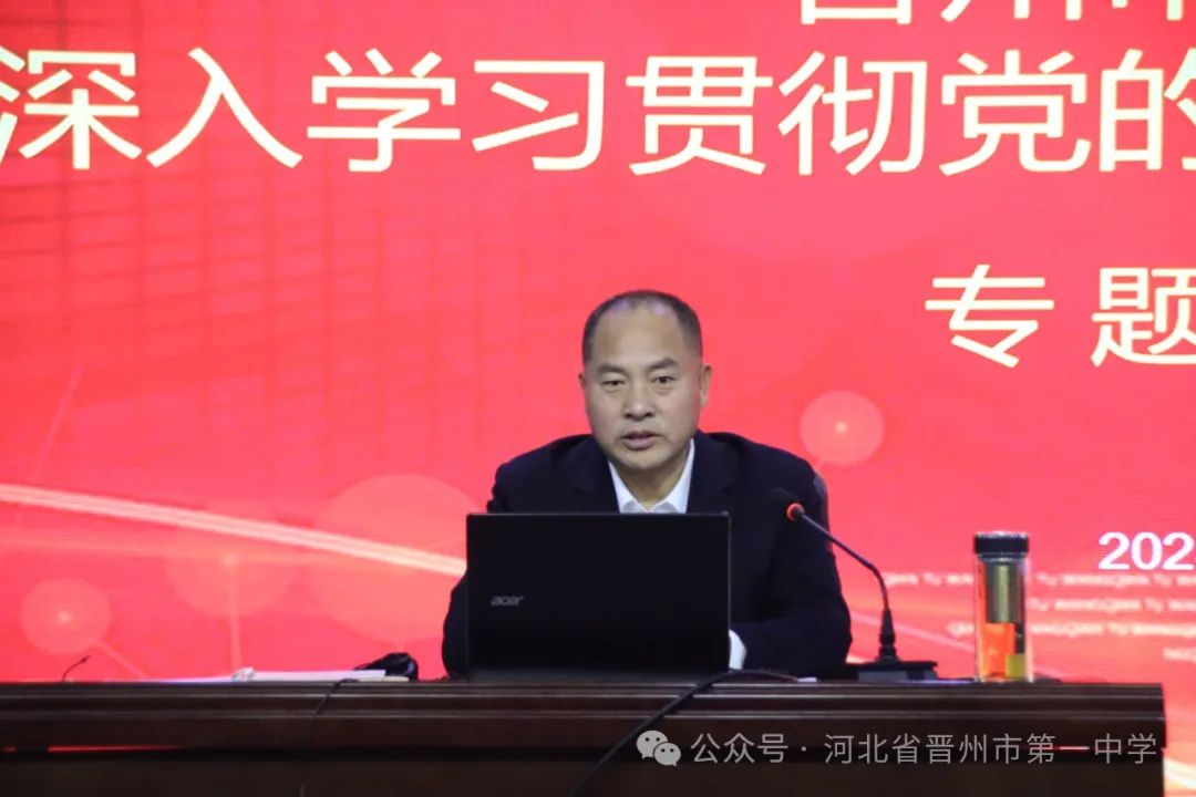为贯彻落实习近平总书记关于思政课建设的重要指示精神,深入贯彻党的二十届三中全会精神,推动思政课内涵式发展,激励学生树立高远的人生理想,11月12日,晋州市教育局党组成员、晋州一中党委书记曹志威同志以《聚焦学习贯彻党的二十届三中全会精神》为题讲授了一堂内涵丰富、意义深刻的“思政课”。