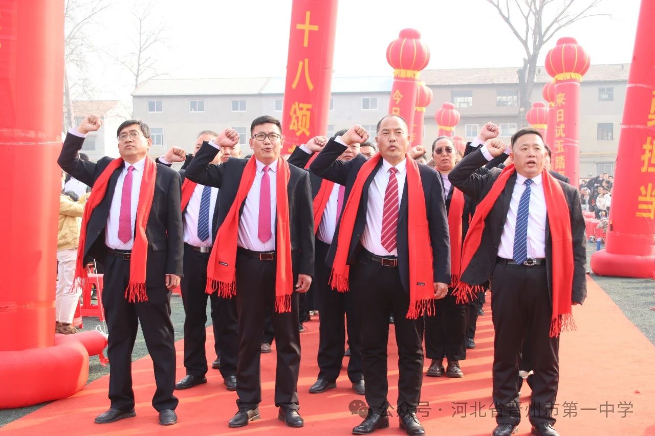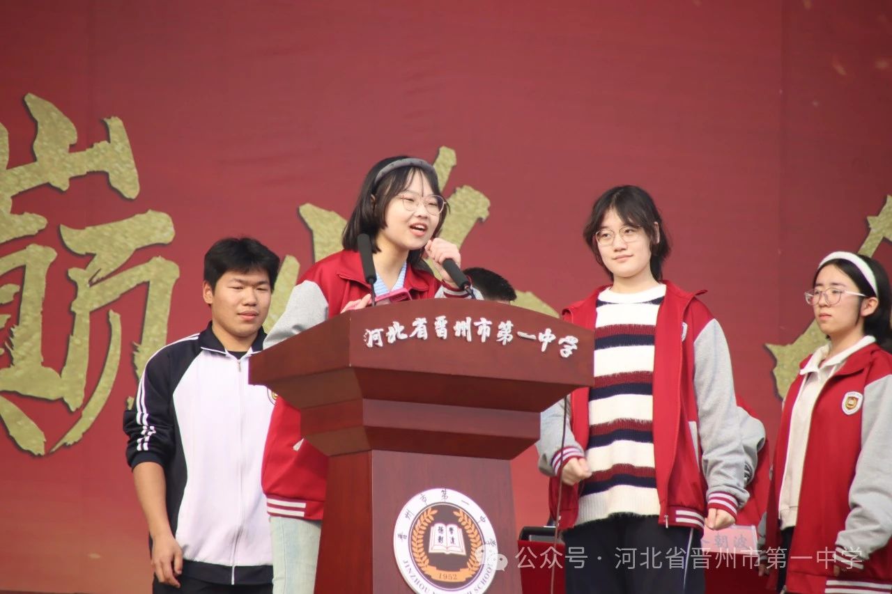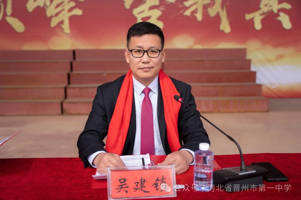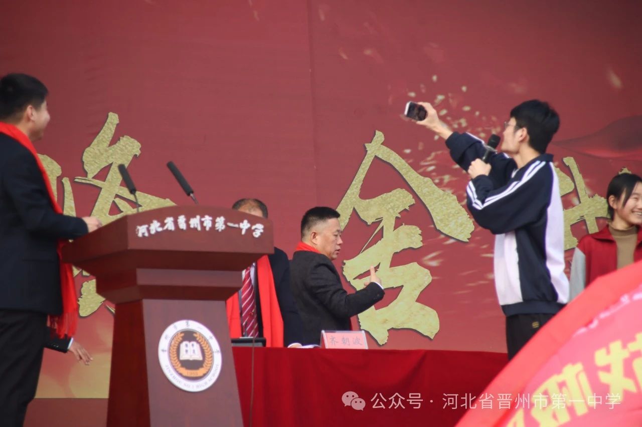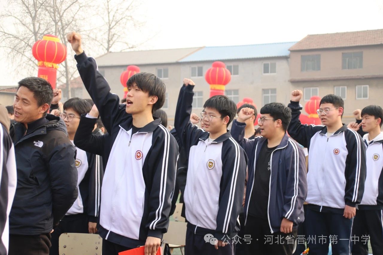 晋州市教育局党组成员、晋州市第一中学党委书记曹志威,党委副书记、校长吴建锁,副校长张永利,工会主席郑晓军,副校长程万里,副校长刘剑,副校长齐朝波在主席台就坐,高三学生家长,全校学生和教师参加大会。