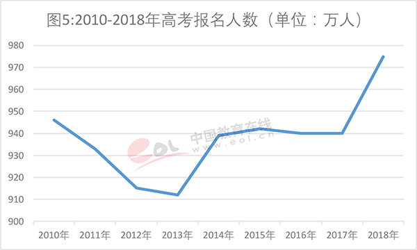 据数据显示,普通本科招生人数在2018年达到了422.16万人。2018年高考报名人数较2010年增长了3.07%,而普通本科招生人数则增长了20.19%。