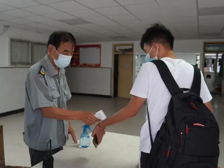 进入校园,同学们迫不及待地赶往宿舍,宿管阿姨、叔叔在宿舍门口等待大家的归来。