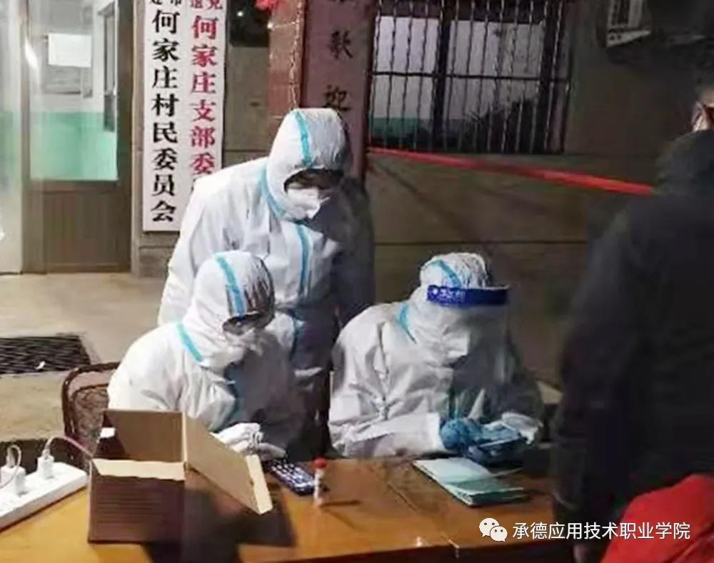 承德应用技术职业学院电子与通信工程系有这样一群学生,在做好自我防护的前提下,回到家乡挺身而出投入到疫情防控的工作中,在自己的家乡为抗击疫情做着力所能及的事情。他们有的协助社区工作人员组织核酸检测;有的在村口进行卡口执勤;有的逐家逐户宣传防疫知识......他们用实际行动彰显了新时代青年学生的责任与担当。 樊鑫凯,计算机信息管理1901班学生,家住河北省石家庄市藁城区廉州镇彭家庄村,在1月10日隔壁村出现新冠肺炎确诊病例的情况下,主动投身村里抗疫志愿行列,协助医护人员为村民做第二次核酸检测,服务到晚上9点多完成了全村5000多人的第二次核酸检测工作。樊鑫凯表示,虽然服务到深夜,但已然忘记了身体的疲惫,能够为抗疫做点事,是自己价值的体现。