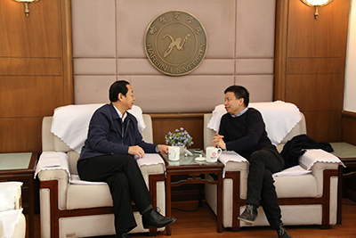 陈志文总编向胡校长介绍了国内外大学的建设经验,并提出新形势下学校要有所为,有所不为,坚定走好特色发展之路的建议。