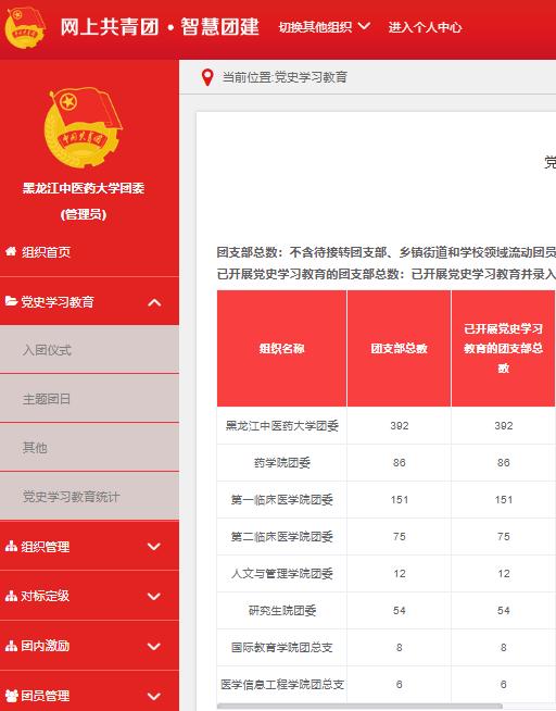 黑龙江中医药大学积极贯彻团省委《关于在团员青年中开展“学党史、强信念、跟党走”学习教育的方案》和学校党委相关部署,制定团委工作方案,并依托团中央智慧团建系统,组织各团支部开展党史学习系列活动。据悉,智慧团建系统由团中央主办,是利用互联网、大数据、云计算等最新技术手段实现的团组织管理智能化工作平台。团省委多次对各高校团支部利用该平台开展党史学习教育情况进行通报,对黑龙江中医药大学给予充分肯定。截至今年10月,黑龙江中医药大学共392个团支部利用该平台开展党史学习教育覆盖率达到100%。