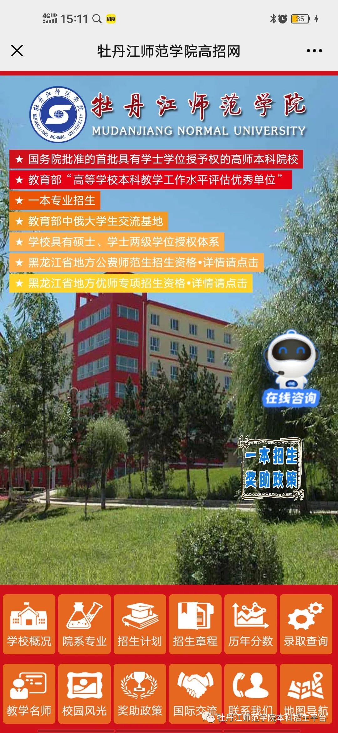 为方便广大考生及家长朋友们进行招生咨询,了解最新招生资讯,牡丹江师范学院招生咨询智能系统正式上线!具体在线咨询方法如下: