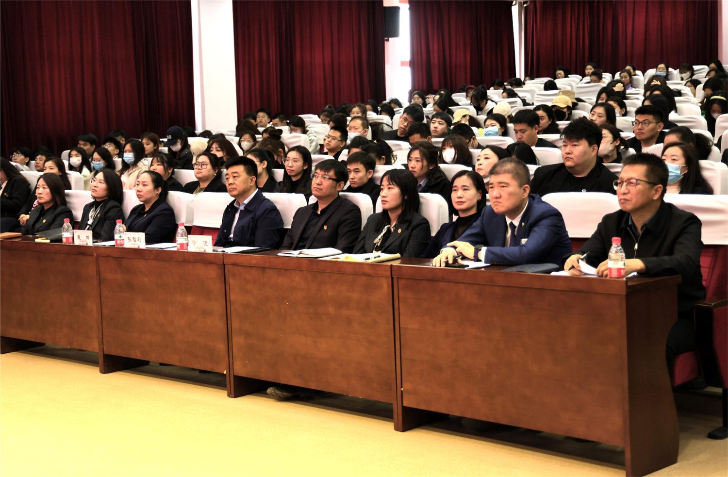 哈尔滨剑桥学院全体学工人员、学生代表等现场聆听报告,近千名师生通过线上收看报告会直播。