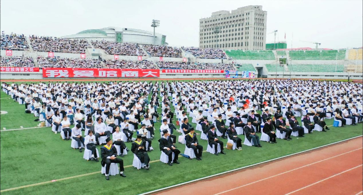 6月20日,哈尔滨商业大学举行2024届本科毕业典礼暨学位授予仪式在学校体育场隆重举行,典礼在线上同步直播,学校师生,海内外校友共同见证和庆祝2024届全体本科毕业生的难忘时刻。近10万人次通过线上直播观礼。作为新中国第一所多科性商业大学,学校经过70余年的发展建设,一代代哈商大人践行着“求真至善、修德允能”的校训精神,在不断拼搏的奋斗路上,追梦、逐梦、圆梦。微光汇聚,星光闪亮,哈商大2024届的毕业生们不负热爱,奔赴山海,以扎实学识向祖国报道,再次走向了强商报国的新征程。