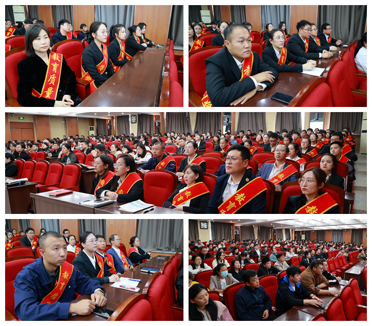 为大力弘扬教育家精神,加快建设教育强国,勇担新时代育人使命,进一步提升教育教学质量,近日,齐齐哈尔工程学院在图书馆601报告厅召开第十一届教育质量奖颁奖大会,理事长曹勇安、院长曹然彬、党委书记郭伟东,党委副书记、常务副院长陈景鑫,副院长白雪、副院长张静出席会议,全面质量管理办公室副主任张洪岩主持,全体教职工线上、线下参会。
