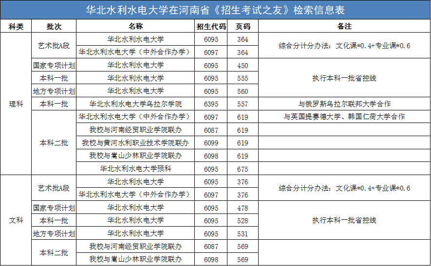 @河南考生|华北水利水电大学在河南省《招生考试之友》检索信息表