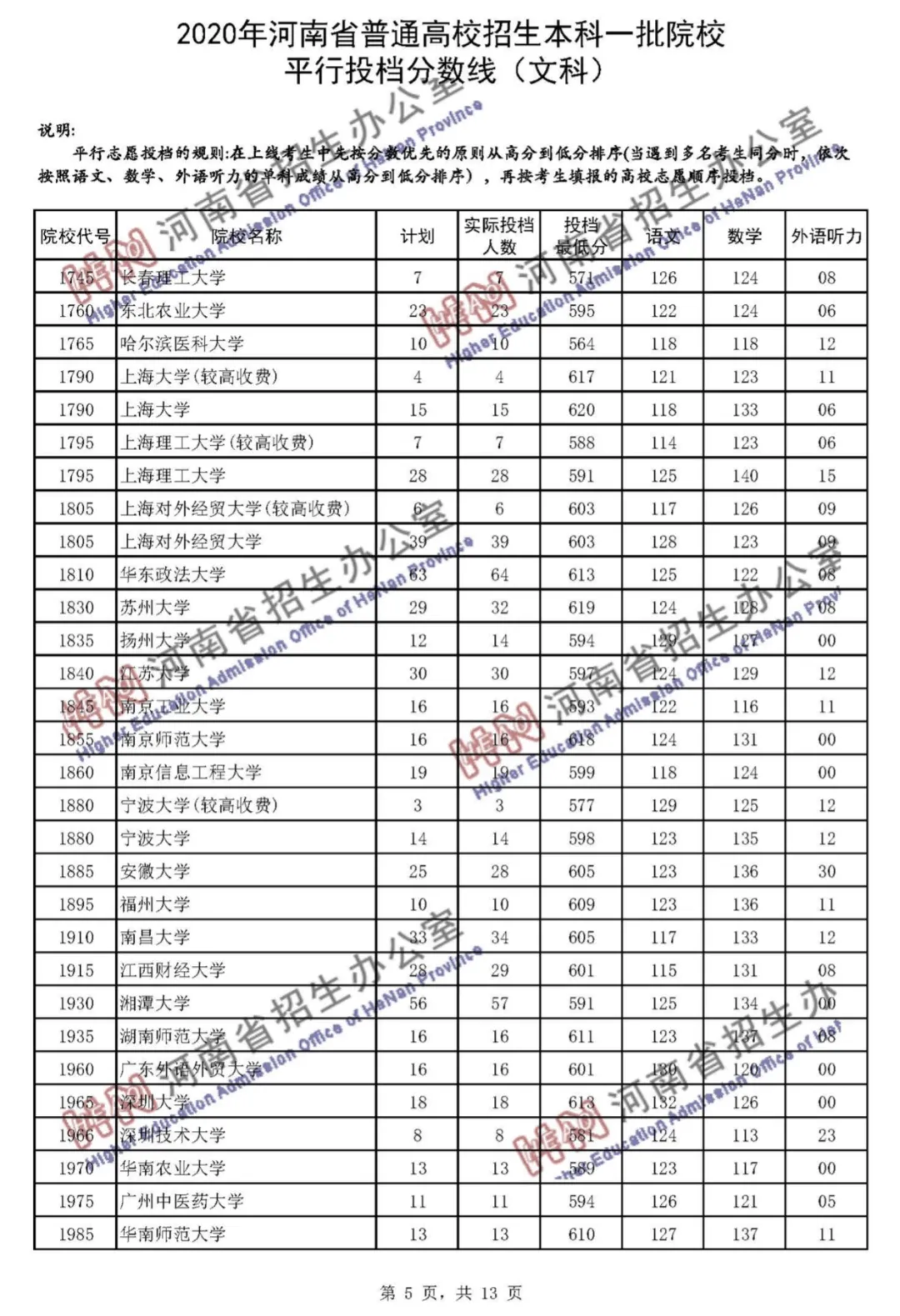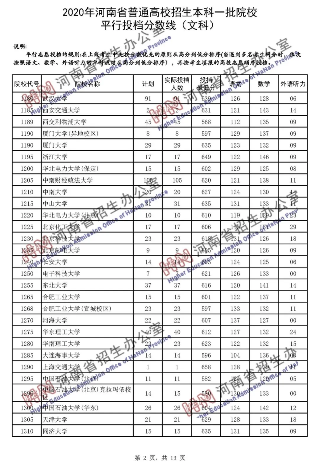 附:2020年河南省普通高招本科一批院校平行投档分数线
