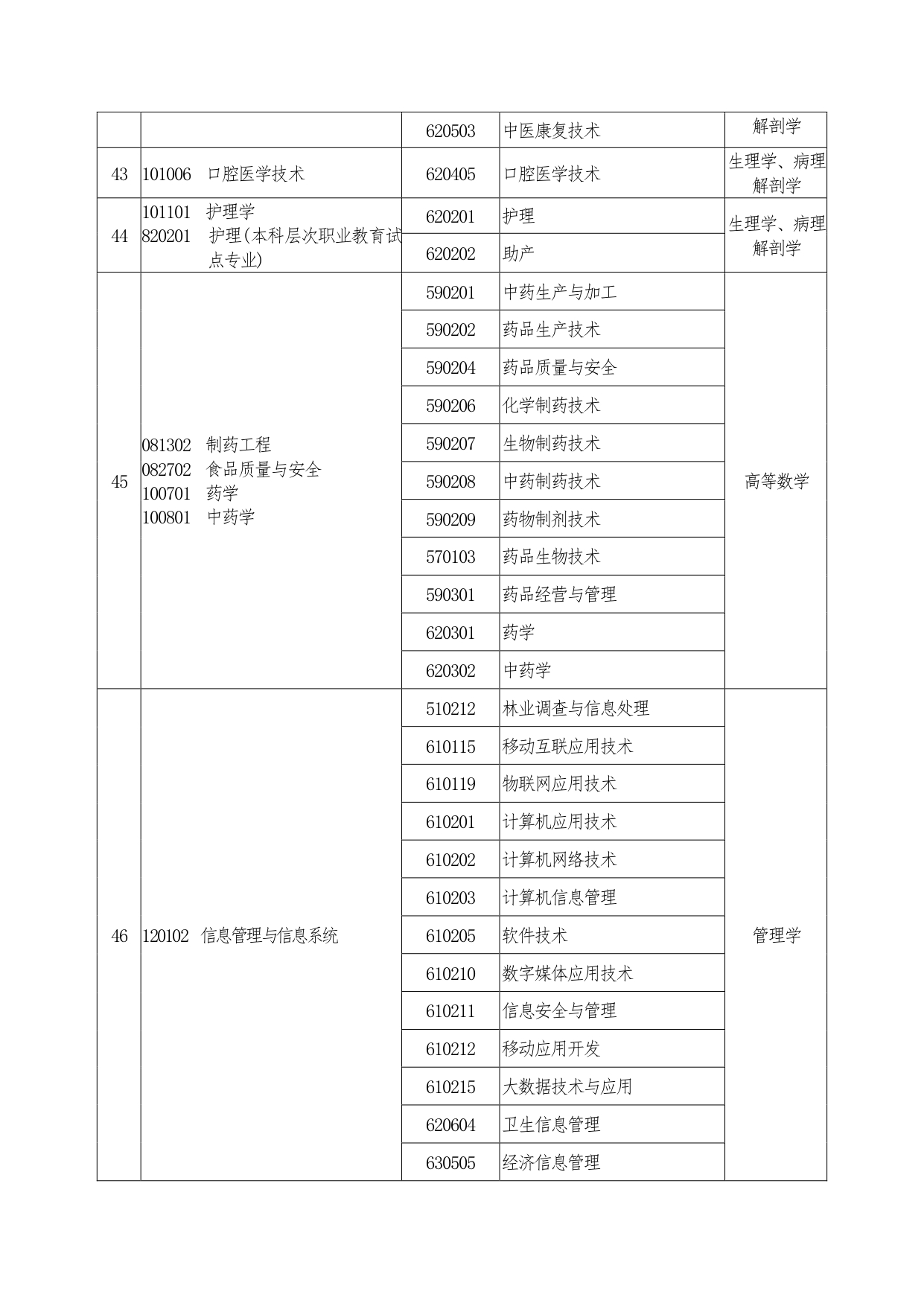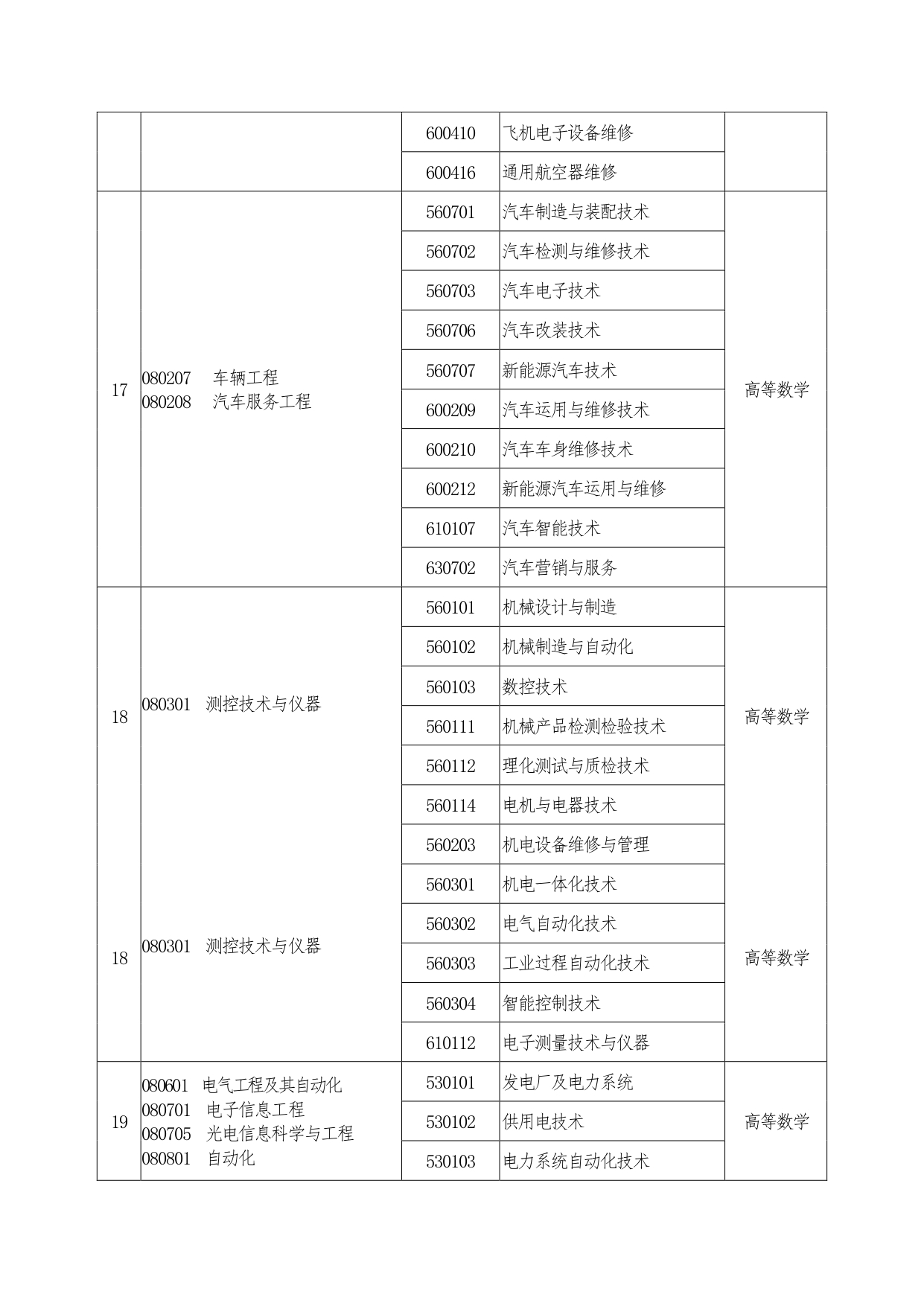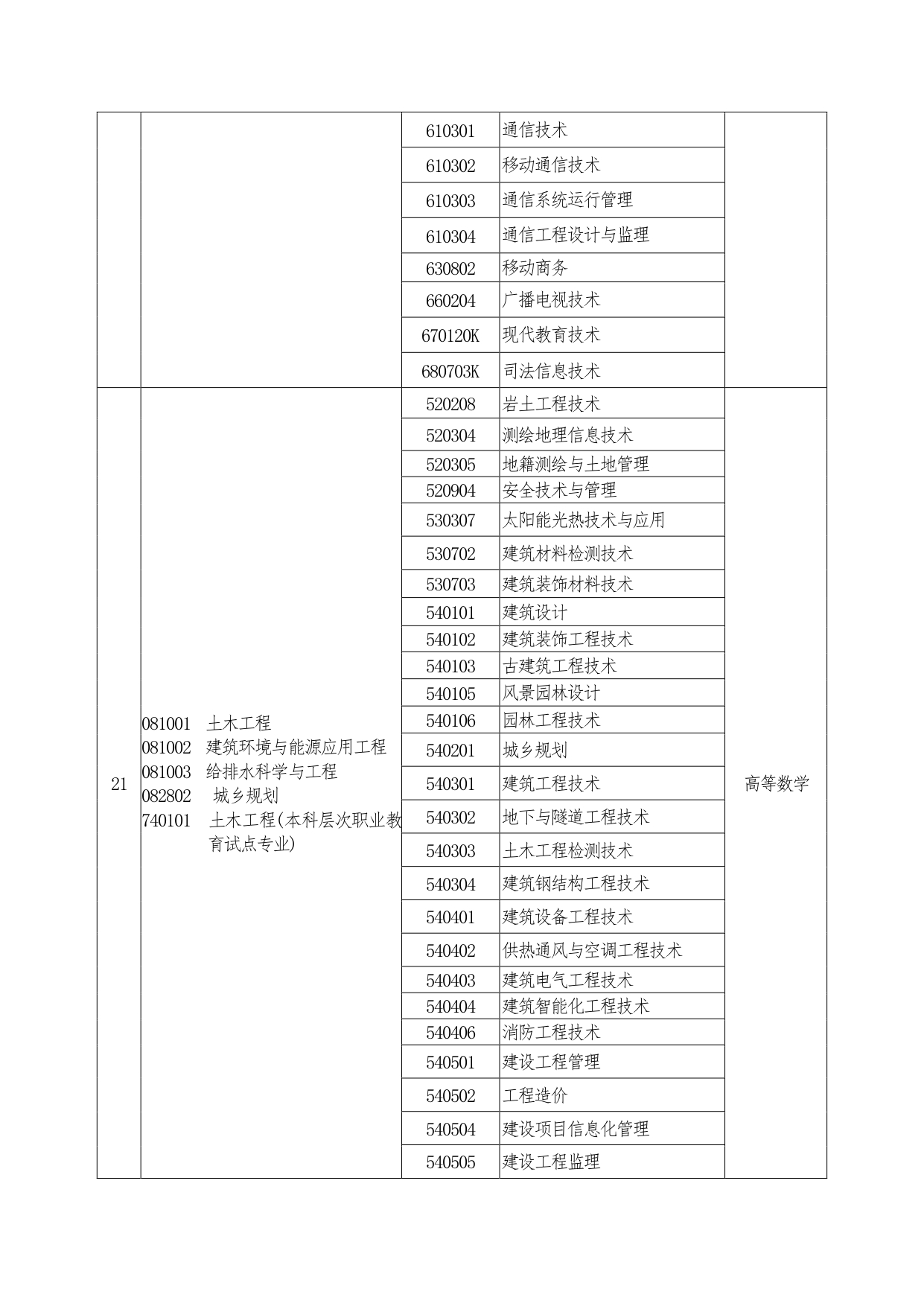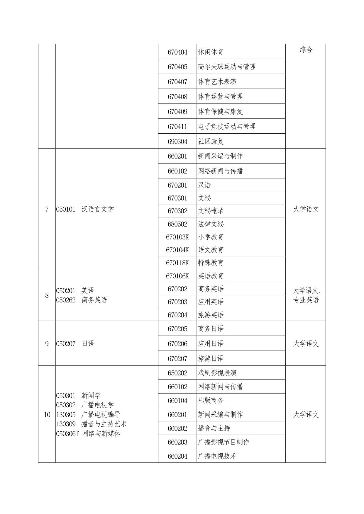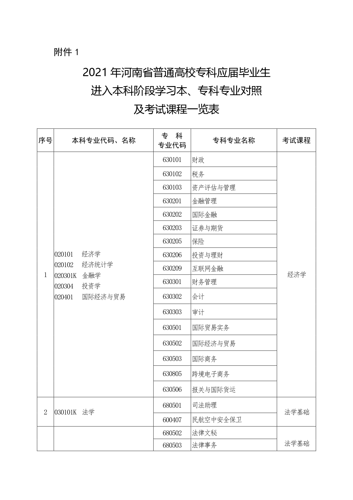 2021年河南省普通高校专科应届毕业生进入本科阶段学习本、专科专业对照及考试课程一览表