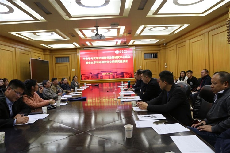 2020年10月15日下午,甲骨学与汉字文明传承发展研究中心成立仪式暨古文字与中国古代文明研究座谈会在明伦校区新行政楼308会议室举行。