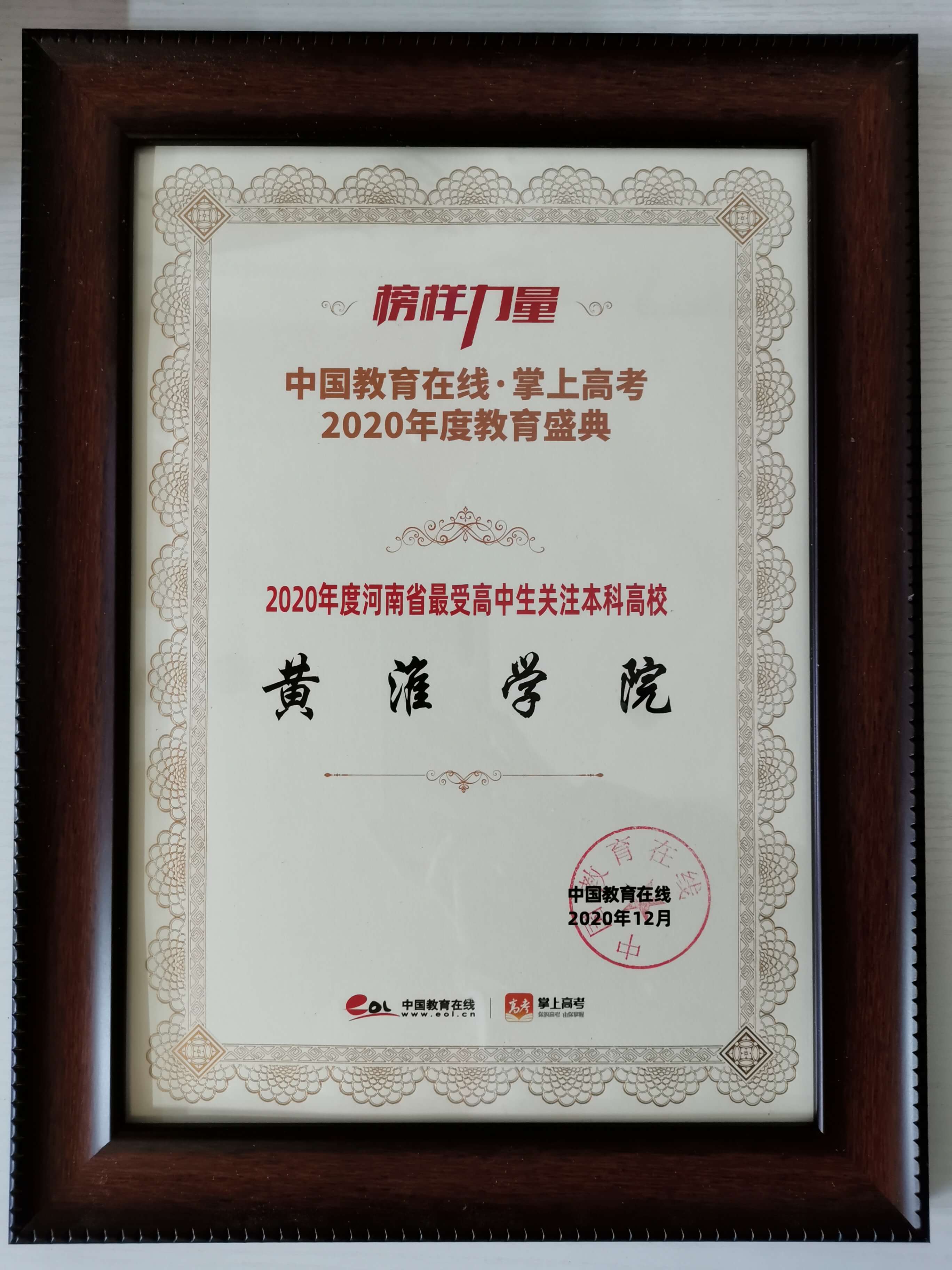金宝搏188入口 讯 近日,金宝搏188入口 ·掌上高考“榜样力量——2020年度教育盛典”评选获奖名单揭晓,黄淮学院荣获“2020年度最受高中生关注本科高校”荣誉称号。