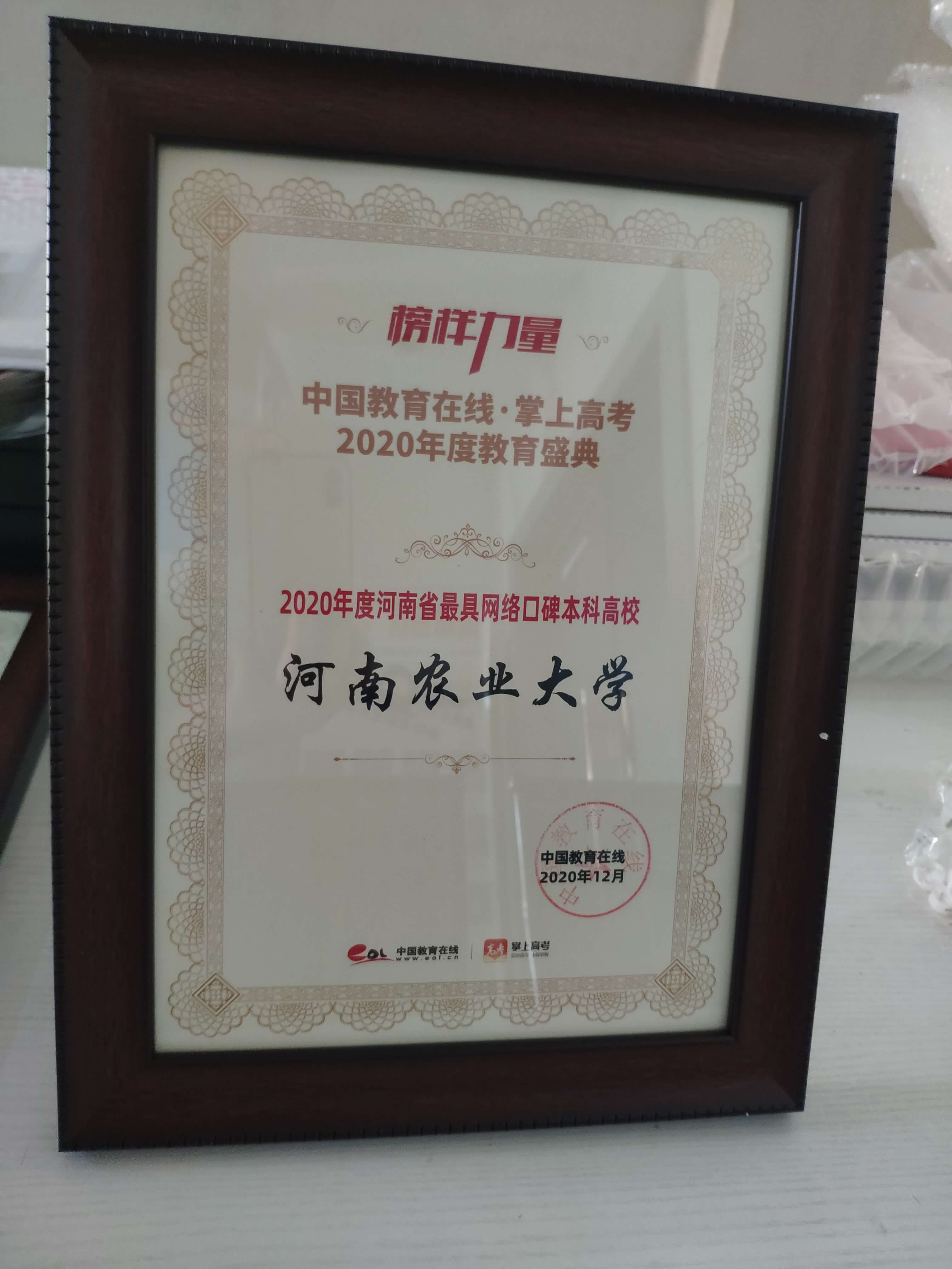 金宝搏188入口 讯近日,金宝搏188入口 ·掌上高考“榜样力量——2020年度教育盛典”评选获奖名单揭晓,河南农业大学荣获“2020年度最具网络口碑本科高校”荣誉称号。