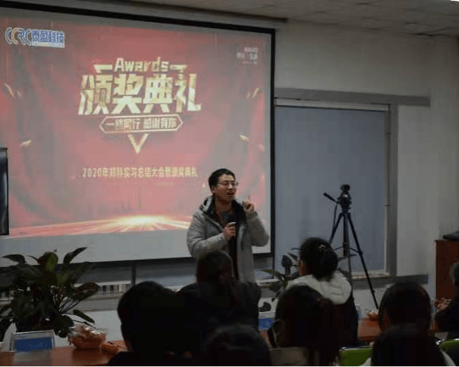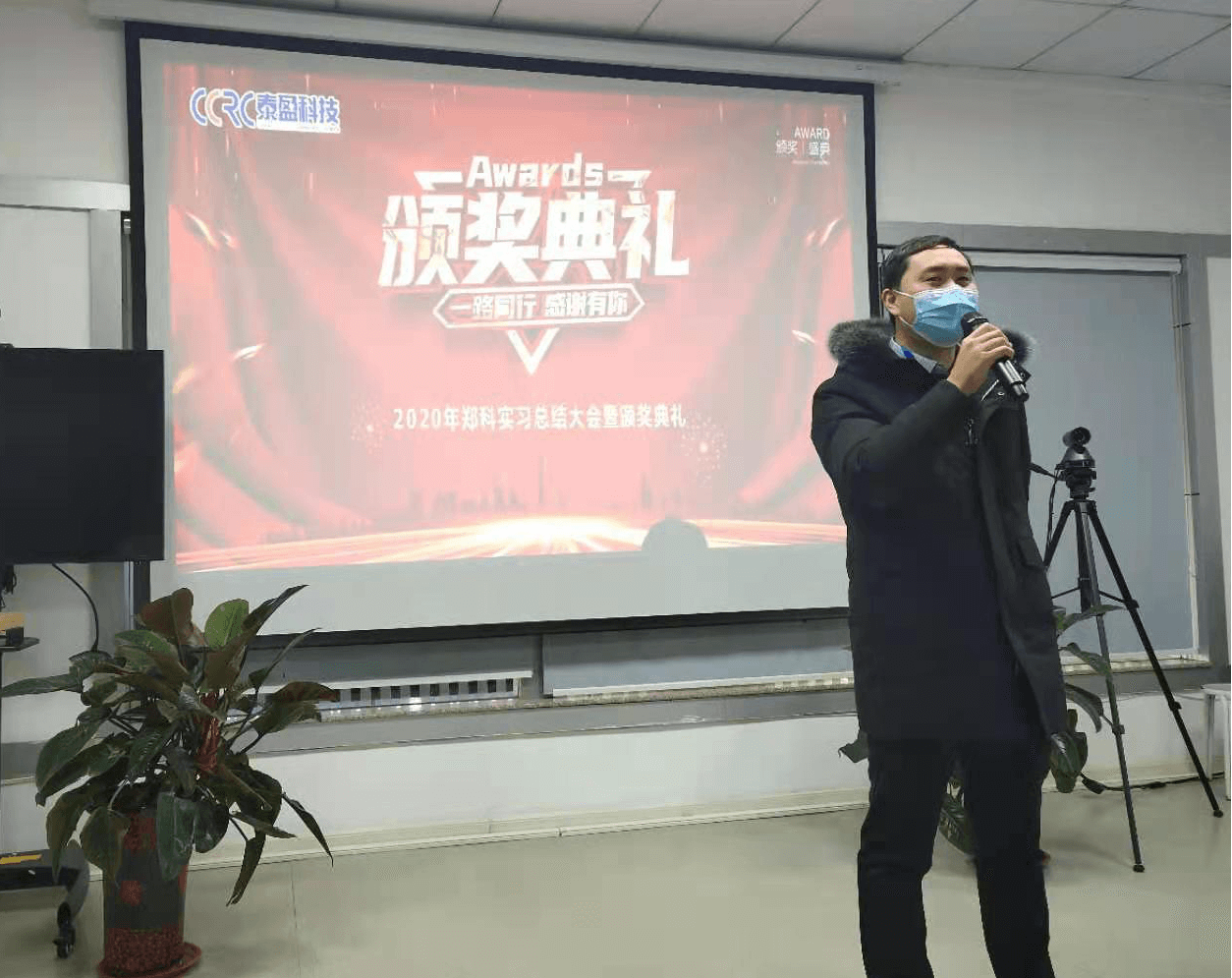 2021年1月9日,郑州科技学院财经学院2020年度实习实训总结大会暨颁奖典礼在山东泰盈科技有限公司举行。泰盈科技泰安分公司总经理陈志建、副总经理杨青、招聘部总经理尹作斌,集团招聘部总经理郑久环,郑州科技学院实习实训导师周伟、李倩、沈昱青出席会议。
