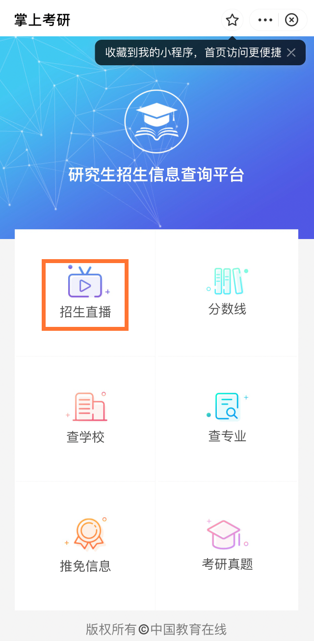 温馨提示:全国各大院校2022年研究生招生直播宣讲会火热进行中,关注“掌上考研”微信公众号,下载掌上考研APP,可以第一时间获取最新直播通知哦~