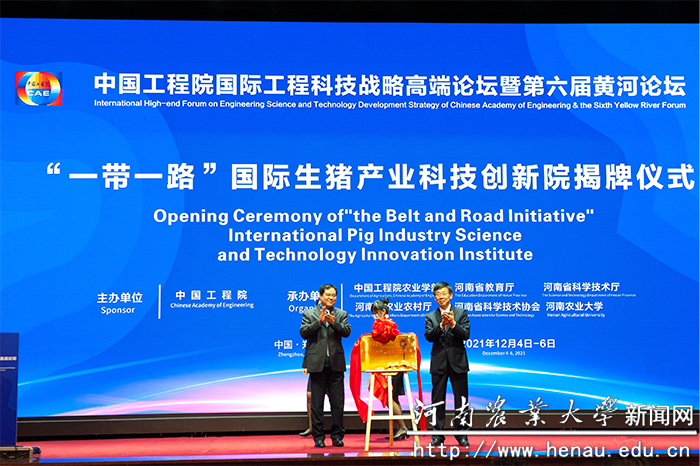 河南省科学技术协会主席吕国范、中国工程院院士张改平共同为“‘一带一路’国际生猪产业科技创新院”揭牌。中国科协、农业农村部主导建设的国际农业科技创新院旨在围绕“一带一路”沿线国家农业产业需求,充分利用民间科技交流渠道,通过组织赋能形成有机体,跨学科、跨领域建设“一带一路”国际农业科技产业创新院、区域创新院、专业创新院,输出我国农业领域的成熟技术、产品和服务,推动学术交流合作、科学传播普及、人才流动、技术转移、民心相通等层次合作,促进农业科技经济融合发展,积极融入全球创新网络,提升我国在国际农业科技治理体系中的能力和地位,推动实现沿线国家粮食安全与营养解决饥饿与贫困,为全球农业发展和经济增长作出积极贡献。