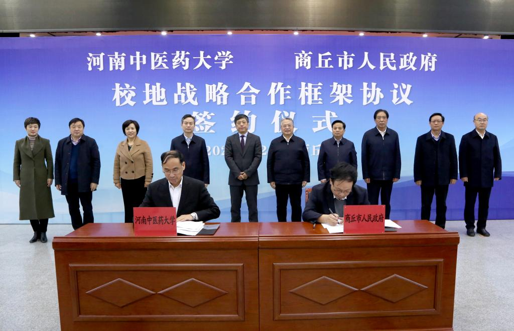 2021年12月17日上午,河南中医药大学与商丘市人民政府校地战略合作框架协议签约仪式在商丘市举行。