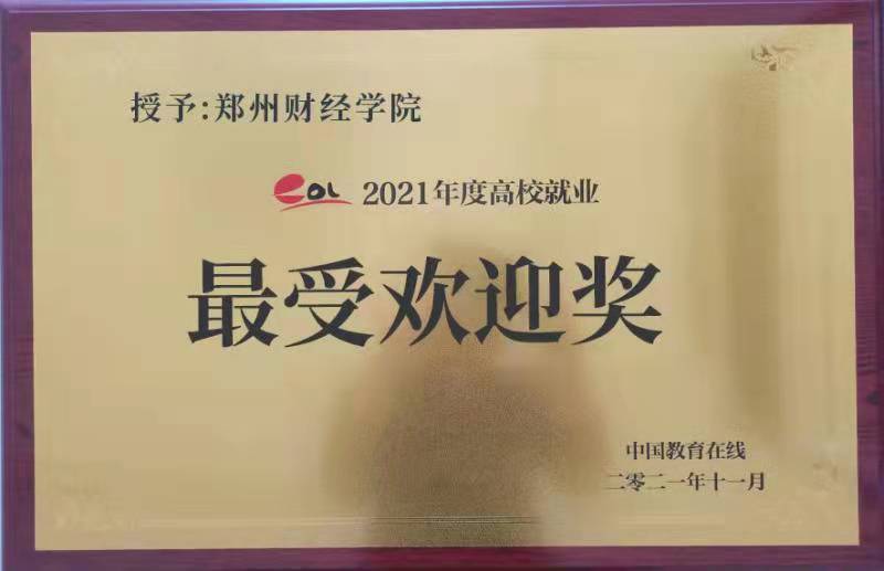 近日,郑州财经学院就业工作获评“2021年度高校就业最受欢迎奖”。