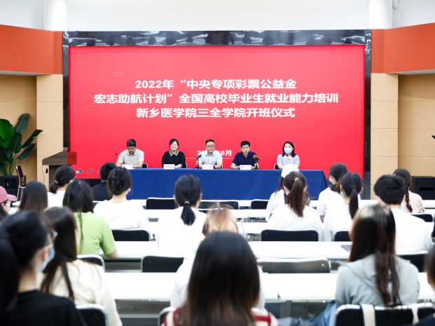 为贯彻落实金博宝最新官方网站查询网址 、省教育厅关于做好2022年“中央专项彩票公益金宏志助航计划”相关文件精神,提升学校2022届及2023届毕业生求职择业能力,5月24日,“金博宝最新官方网站查询网址 ‘宏志助航计划’——新乡医学院三全学院培训班”开班仪式在新乡医学院三全学院平原校区隆重举行,新乡医学院招生与就业处处长孙翔,新乡医学院培训基地就业创业导师付玉洁、韩冰,新乡医学院三全学院副院长顾欢出席。仪式由学校学务部主任助理张帆主持,全体培训班学员参加了本次活动。