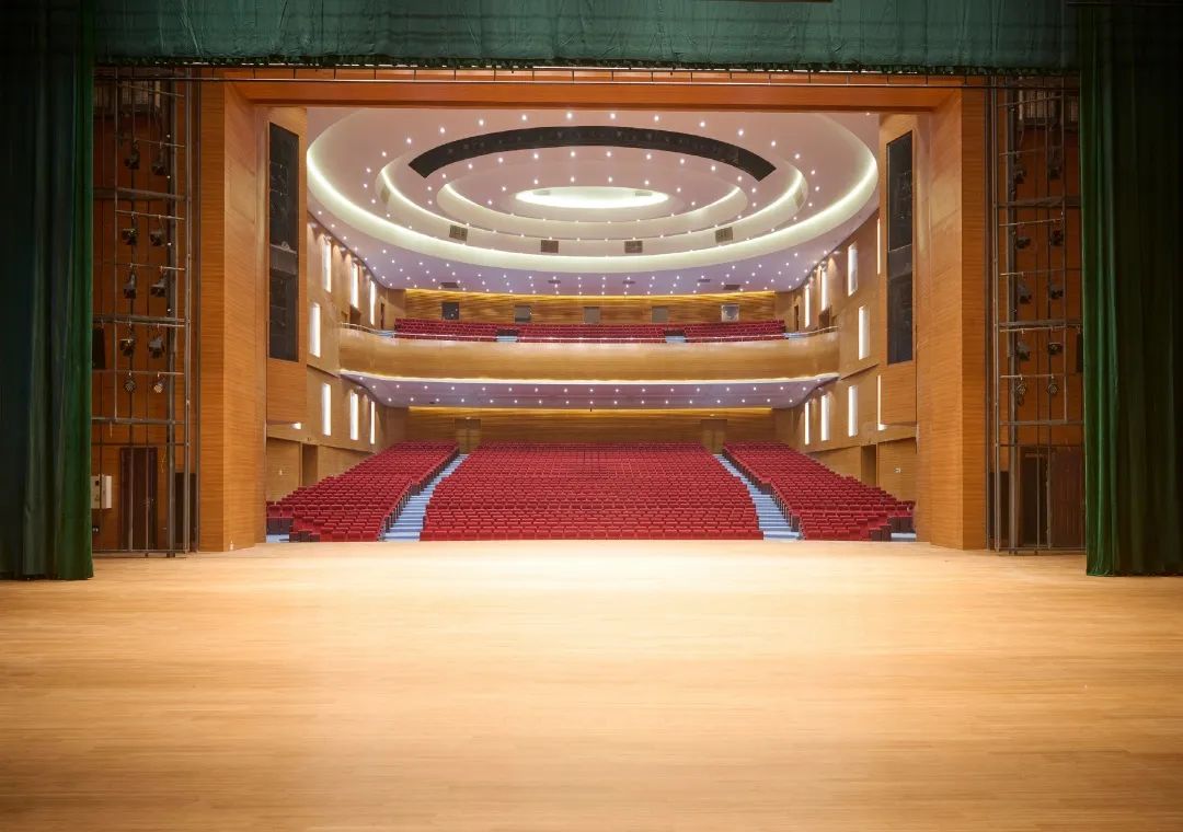 在立面设计上力争体现宏达、简约的风格特征,并与周边环境的有机结合,营造了校园的对外形象。舞台灯光全部使用国内知名品牌,电脑灯32台,聚光灯99台,成像灯43台,平板灯42台,LEDPAR灯130台,追光灯2台,全频音响47只,低频音响6只,次低频音响4只,Dsp数字处理器14台。显示屏选用的为国内知名品牌,舞台大屏尺寸为17.92*9.12米,舞台两侧有两个3.6*2.0米的侧屏。