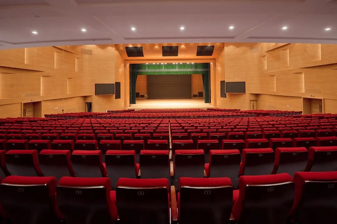 你看,浓郁的红色绕着礼堂层层展开,排放有序的木椅,足以容纳你和同学的目光。