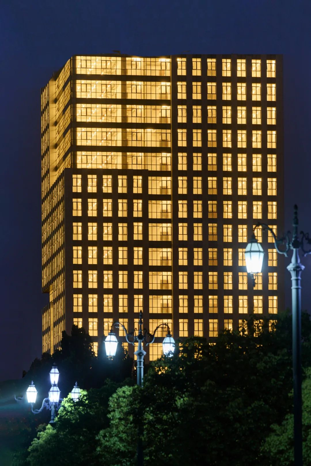 科研主塔楼有2幢,分别共计20层,建筑面积共39993.07㎡;功能设置为教授实验室、教授工作室等。两幢塔楼呈“姊妹楼”的方式对角布置于基地西南侧和东北侧,在二至五层,除了垂直交通核心筒外,其余空间和裙房统一实行功能布局,以构建连续环通的水平交通系统。