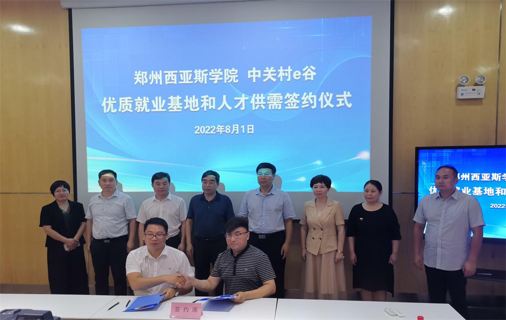 期间,在郑州西亚斯学院和上街区领导的见证下,由学校代表和中关村e谷代表签署了校企双方的优质就业基地和人才供需合作协议。