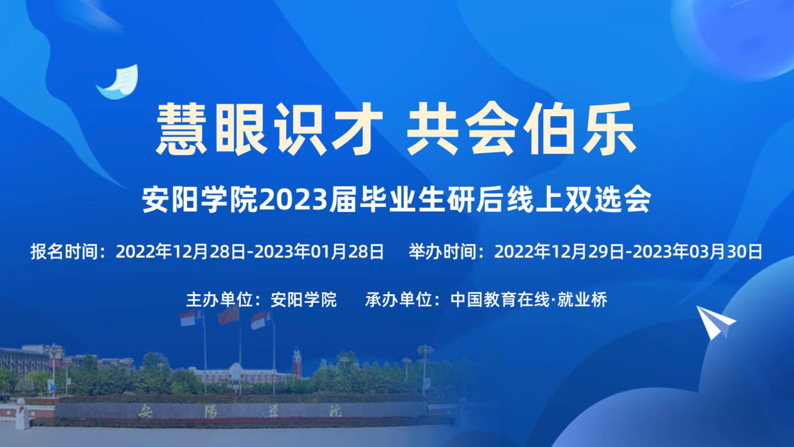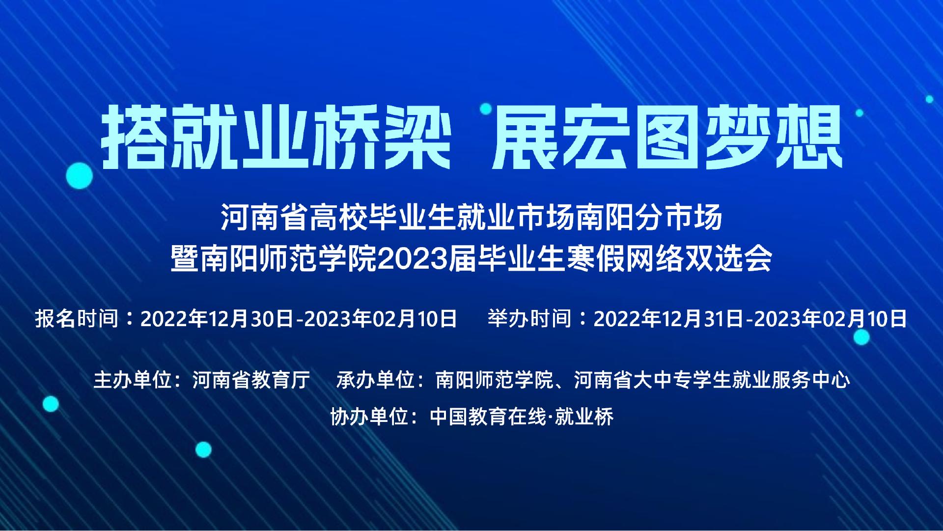 为贯彻落实金博宝最新官方网站查询网址 关于高校毕业生就业创业工作的决策部署,做好疫情防控常态化下的毕业生就业工作,加快建立毕业生和用人单位之间全方位、多渠道的沟通桥梁,更好促进河南高校毕业生就业,满足用人单位对应届毕业生的招聘需求,河南多所高校联合金宝搏188入口 -就业桥共同举办河南各高校2023届毕业生网络双选会。
