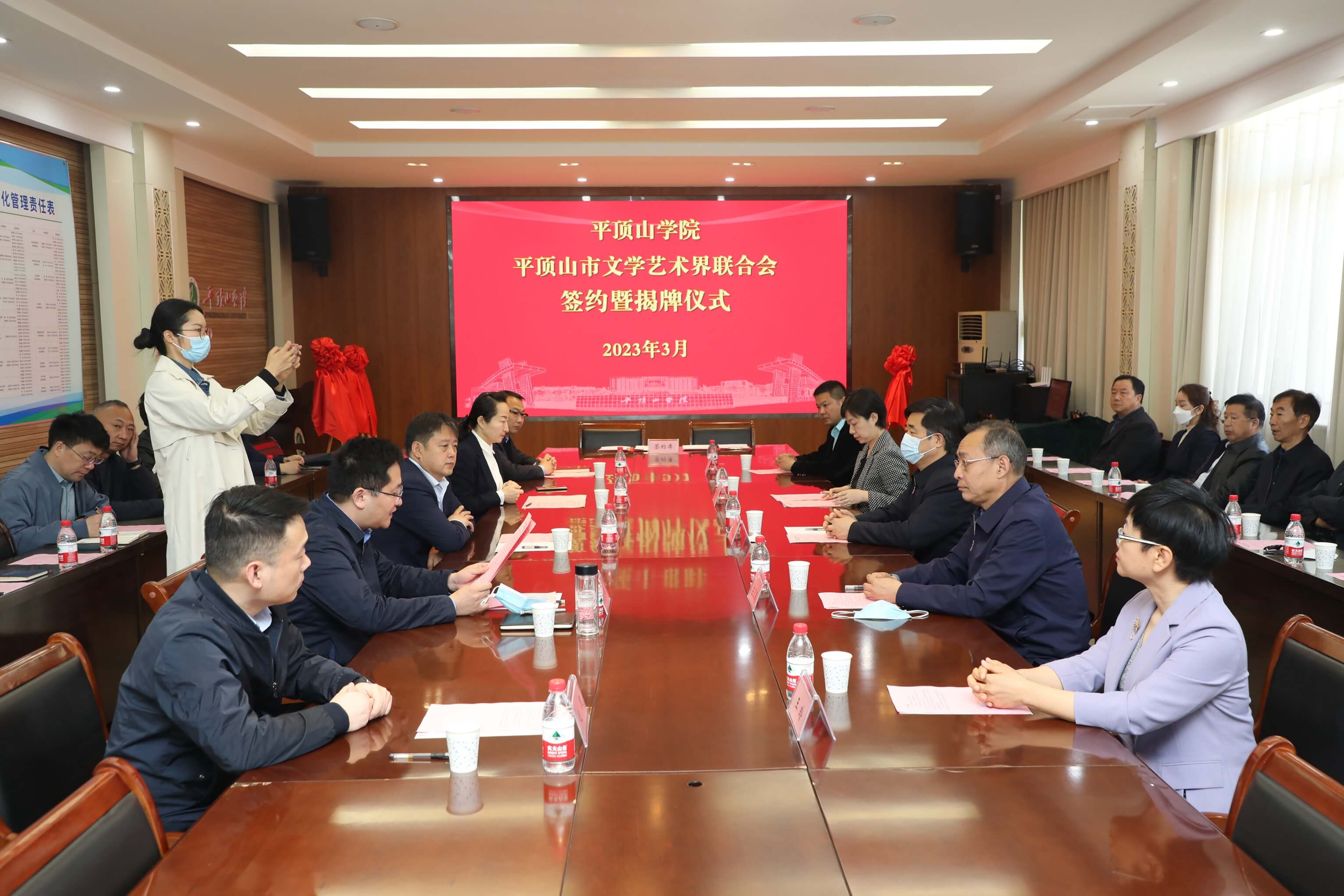 3月14日上午,平顶山学院与平顶山市文学艺术界联合会战略合作签约暨揭牌仪式举行。市委常委、宣传部长、副市长刘文海,市委宣传部一级调研员左玉昆,市文联党组书记、主席虎静,学校副校长李波、郑东丽、米立伟等出席活动。