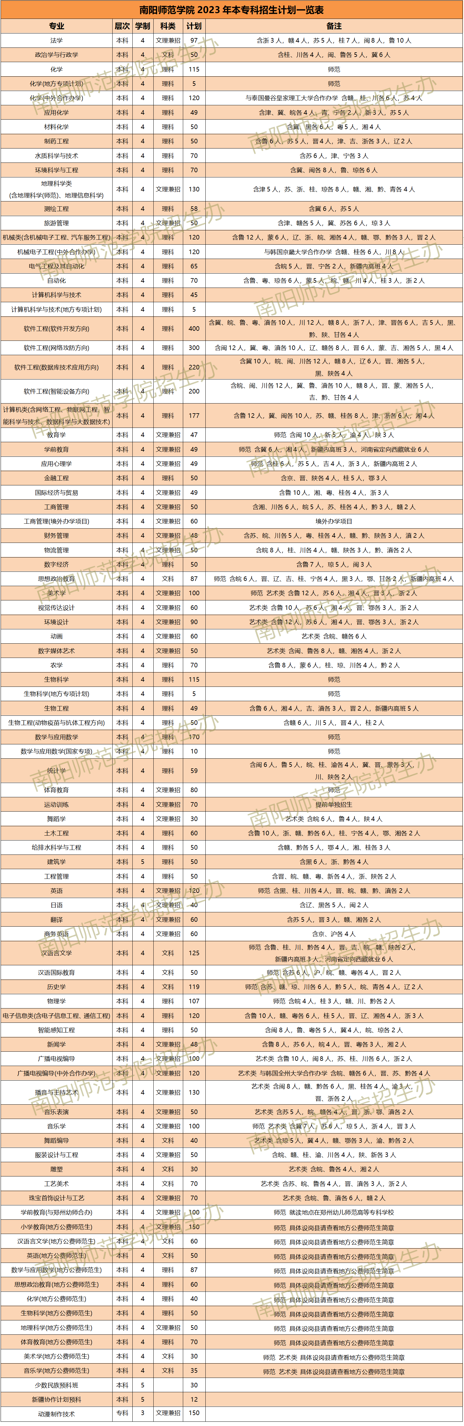 重磅发布!南阳师范学院2023年本专科招生计划一览表
