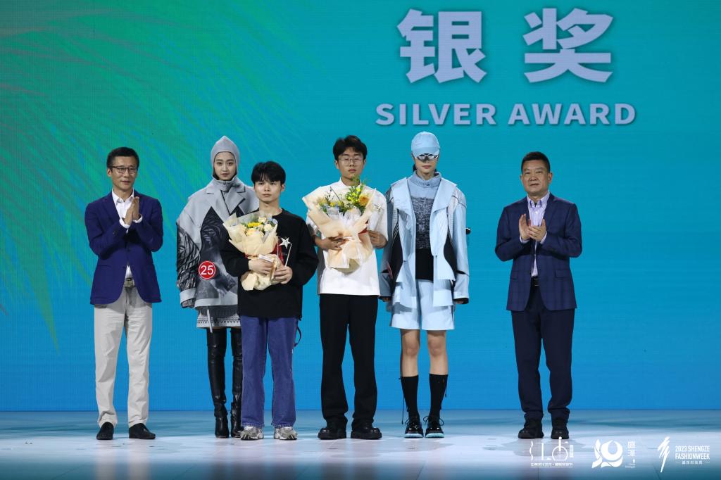 本次大赛以“绿色脉动”为主题,时尚之都盛泽为选手提供面料,通过产业与选手创意碰撞火花,为中国时尚设计注入动能。鞠承贤同学的作品《丛林轨迹》灵感来源于自然地貌,通过服装版型的曲线裁剪与充气、编织等工艺来模拟大自然地貌特征,在力求创意的同时凸显商业化落地,得到了评委一致好评,最终荣获银奖。