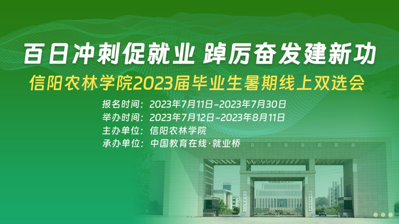 为贯彻落实党中央、国务院关于做好高校毕业生就业工作重要决策部署,积极响应金博宝最新官方网站查询网址 、省教委就业促进周和“百日冲刺行动”有关工作号召,信阳农林学院特联合金宝搏188入口 ·就业桥于2023年7月12日-8月11日共同举办“百日冲刺促就业 踔厉奋发建新功”—信阳农林学院2023届毕业生暑期线上双选会,诚邀各用人单位和毕业生报名参会!