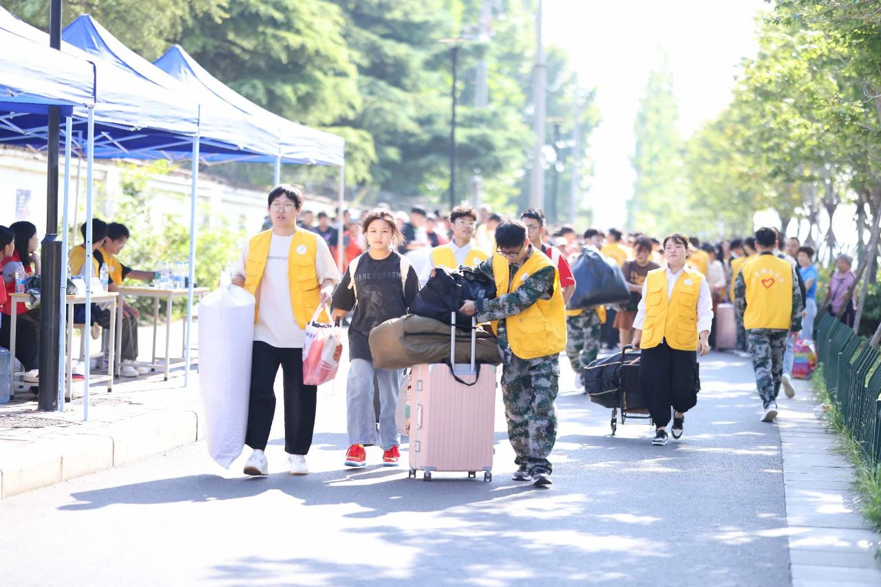 商学部2023级日语专业学生张艺展独自一人从家乡平顶山出发来校报到,他说:“还没踏入校门,就看见学长学姐微笑着迎面朝我走来。他们询问我住在哪栋宿舍楼的同时,手也没闲着,扛起我的行李就往校内走。进到学校后有老师开车把我送到宿舍楼前,路上还耐心回答了我初入校园的各种疑惑。入学第一天,能遇到如此温暖的老师和学长学姐,我真的感到很幸运。”