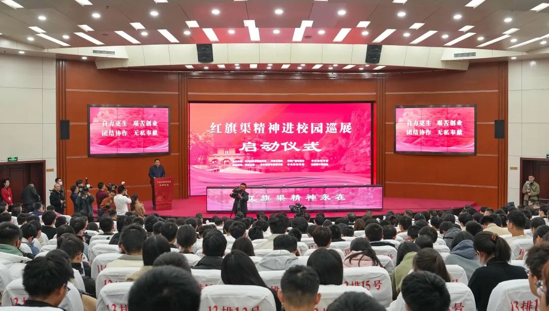 11月21日,“红旗渠精神进校园巡展”活动在郑州大学正式启动。省委宣传部常务副部长黄玉国、安阳市委书记袁家健、河南日报社副总编辑张学文、河南广播电视台副总编辑郭士飞,郑州大学党委书记别荣海、党委副书记吴宏阳出席,郑州大学党委常委、宣传部部长厉励,林州市委书记孙建铎,红旗渠干部学院党委副书记、常务副院长刘芳,郑州大学党委理论学习中心组全体成员及师生代表等500余人参加启动仪式。安阳市委常委、宣传部部长薛崇林主持启动仪式。