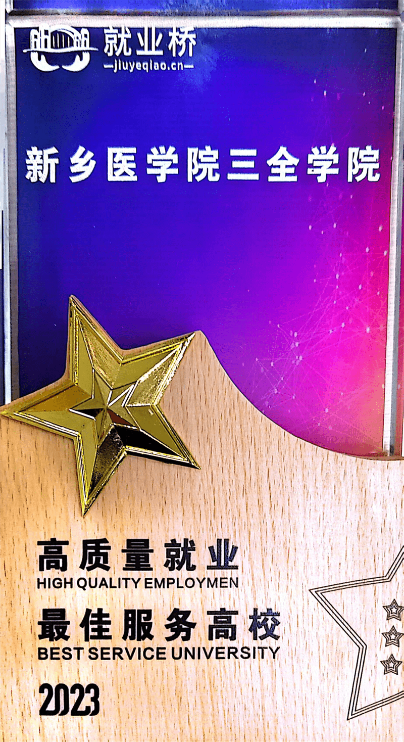 本次“就业桥——2023年度高质量就业高校”评选综合了金宝搏188入口 就业数据报告、第三方搜索引擎数据、高校在促进毕业生高质量就业服务方面创新举措等数据表现,新乡医学院三全学院相关数据排名均在全国同类院校前列。