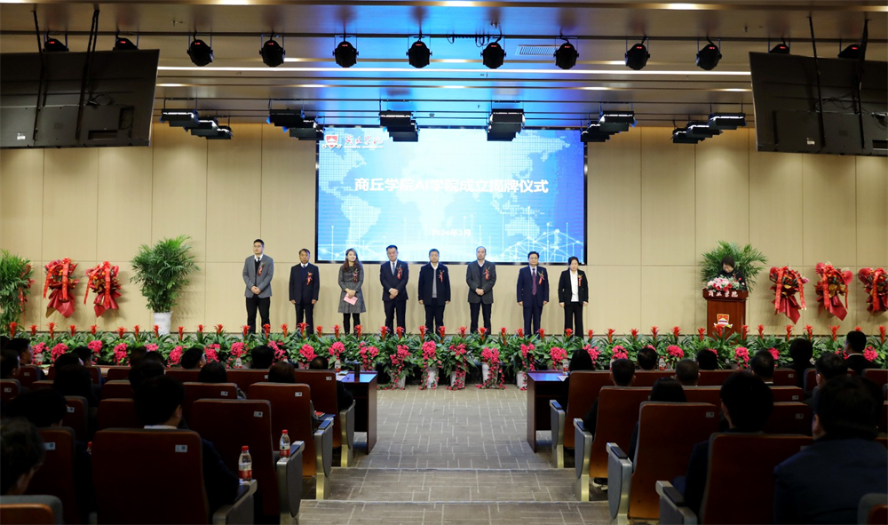3月25日,商丘学院在图书馆五楼多功能报告厅召开AI学院成立揭牌仪式。商丘市教育体育局副局长张闻、商丘市科学技术局副局长王涛,春来教育集团副董事长杨新忠,商丘学院校长、党委副书记程印学等出席仪式,并为AI学院揭牌。揭牌仪式由副校长潘一展主持。