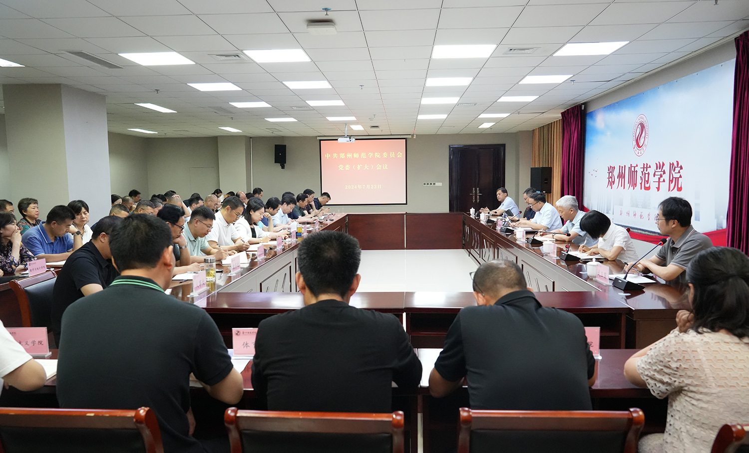 7月23日上午,郑州师范学院召开党委(扩大)会议暨理论学习中心组学习(扩大)会议,传达学习党的二十届三中全会精神,研究部署学校学习贯彻落实工作。党委书记李仰智主持会议并讲话。