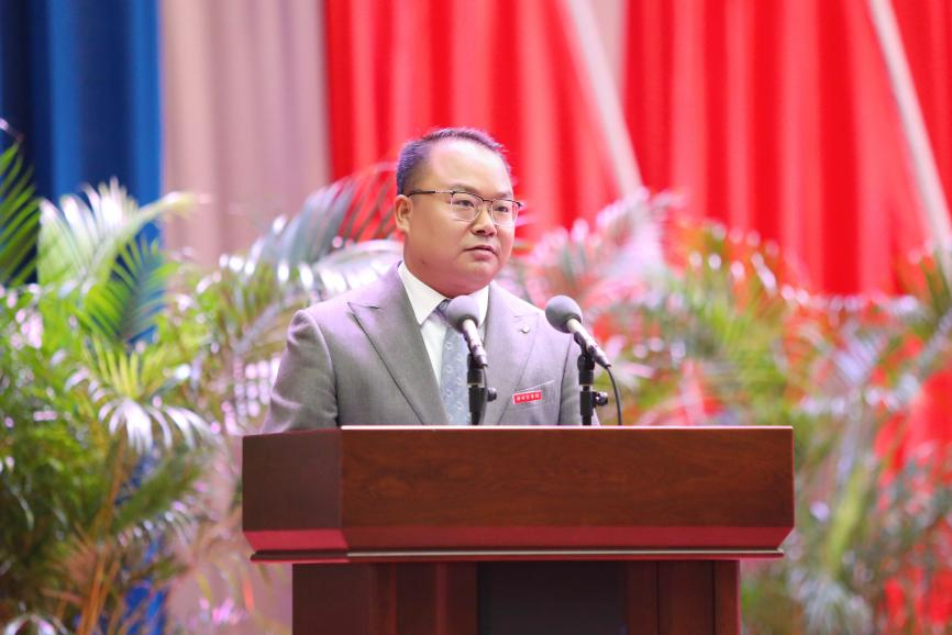 王育华董事长在讲话中代表董事会向加入郑商、与学校同行的新同仁表示热烈欢迎。董事长指出,上学期全校上下始终保持奋进姿态,团结一心、集智攻关,用心开展校庆活动,圆满完成招生工作,持续提升社会影响力。越来越多的郑商人代表学校出现在更大的舞台上,在全国、全省的大赛上取得了优异的成绩,发出郑商的声音。董事长勉励全体郑商人齐心协力,确保各项工作有条不紊地推进。她强调,作为教育工作者,要更加保持自信、守正创新,在直面问题、破解难题中,换一种角度去思考、换一个途径去探索、换一种方式去解决,跳出“舒适区”,乘势而上,一同实现更加完美的更迭。