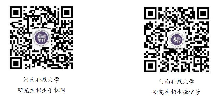 河南科技大学研究生招生手机网站、微信公众号二维码如下,欢迎关注。