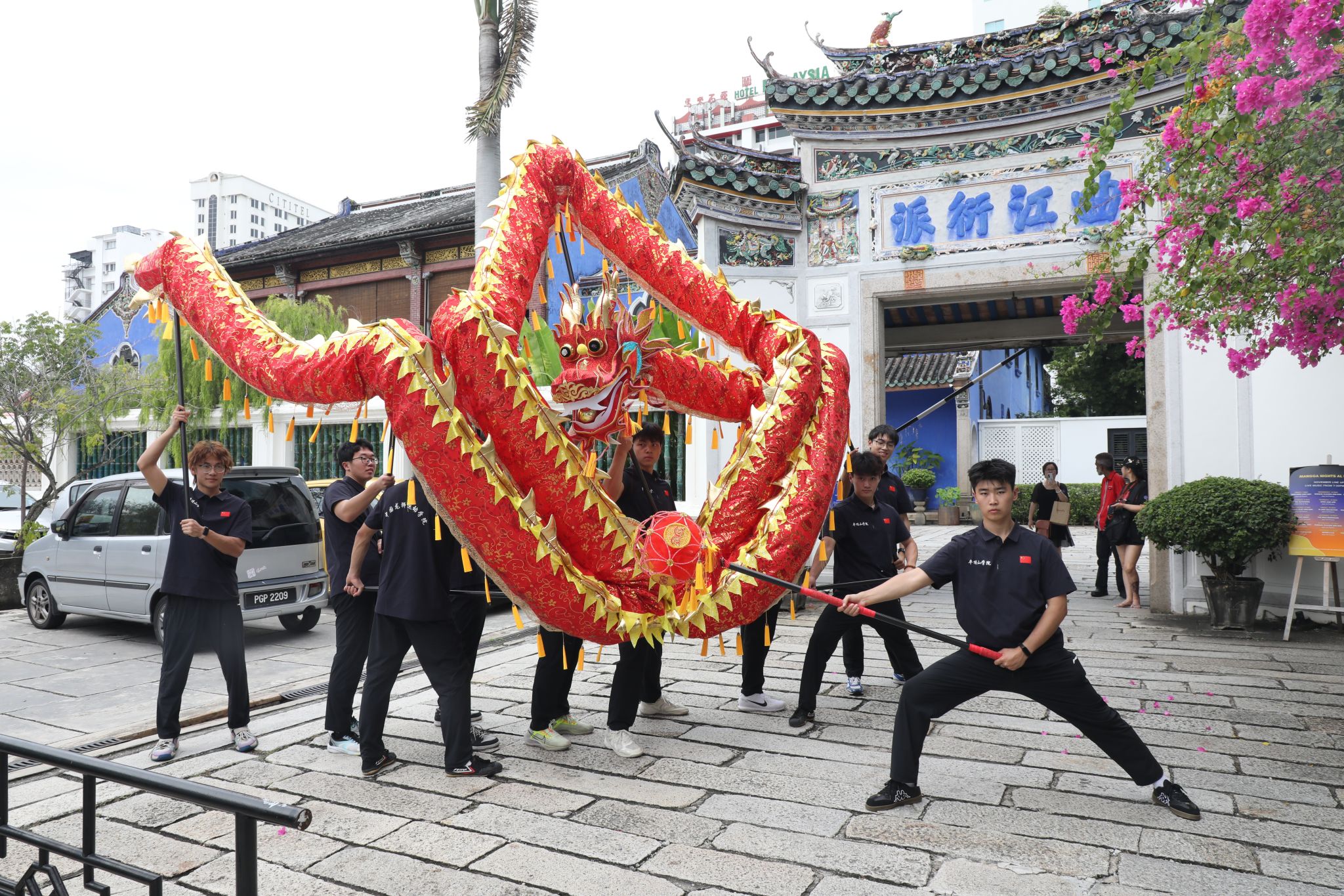 接下来的两天,在槟州武术龙狮总会的精心组织安排下,我校舞龙队带着祥龙在槟城升旗山、壁画街、姓周桥码头、张弼士故居等游客集中和华人聚居的区域,进行了多场巡游表演。舞龙每到一处,都会吸引众多观众驻足观看。队员们手擎祥龙,翻腾跳跃,在观众们的掌声和镜头下,将祥龙舞得活灵活现。现场很多华人在了解到这支舞龙队来自祖国河南后,纷纷竖起大拇指称赞致敬。