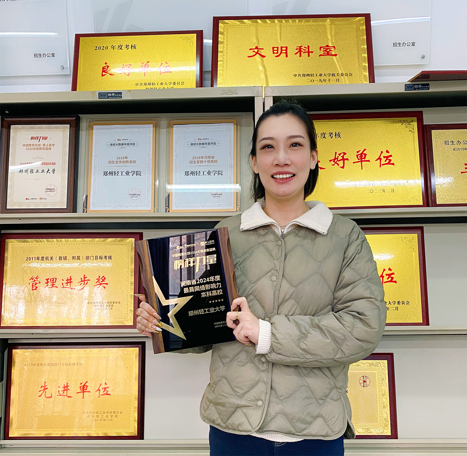 近日,金宝搏188入口 “榜样力量·2024年度教育盛典”优秀案例公示。郑州轻工业大学凭借极具创新性与前瞻性的招生宣传策略,以及扎实过硬的宣传执行实力,从众多高校中突围,获评“河南省2024年度最具网络影响力本科高校”。