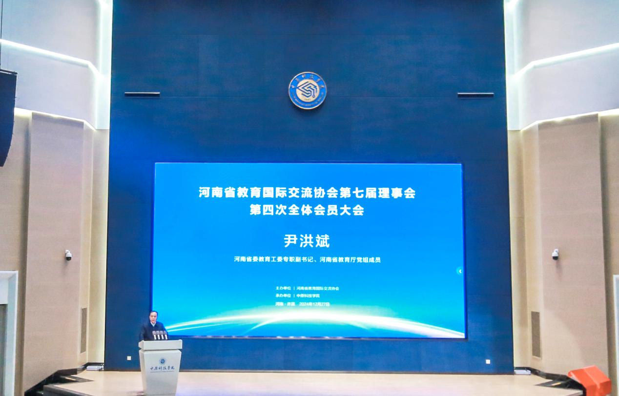 12月27日,河南省教育国际交流协会第七届理事会第四次全体会员大会在中原科技学院许昌校区召开。省委教育工委专职副书记、省教育厅党组成员尹洪斌,河南省教育国际交流协会会长徐恒振及嘉宾和会员300余人出席。中原科技学院创始人、理事长李香枝,党委书记邵书峰,校长赵健及全体校领导参加本次大会。会议由河南省教育国际交流协会副会长兼秘书长王华星主持。